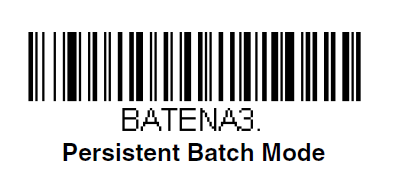 Persistent Batch Mode is the same as Inventory Batch Mode, except that once the data is transmitted to the host, it is retained in the scanner. If you want to transmit more than once, you can do so using this mode. To clear the scanner's buffer, you must scan the Clear All Codes barcode.