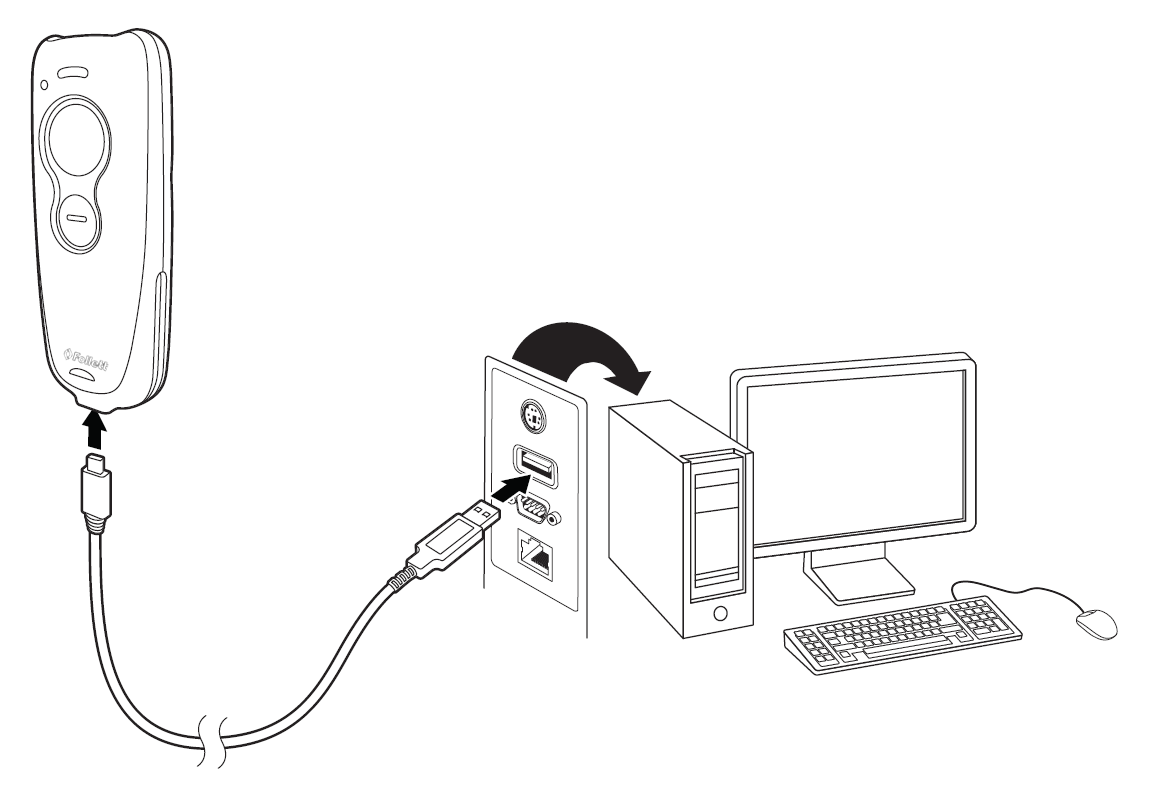 Note: The PocketScan device charges with a USB cable to computer or via a general purpose USB wall charger (not provided). Charging with a USB wall charger is faster.