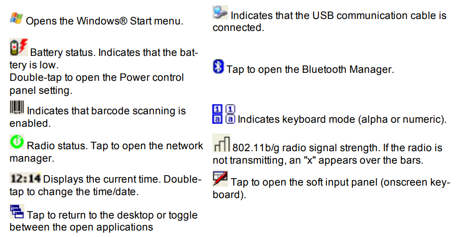 Located at the bottom of the Panther LCD, the command bar includes application menus and buttons, and provides access to the Input Panel (on-screen keyboard).