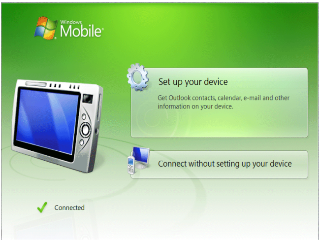 6. Click Set Up. The Windows Mobile Device Center pop-up reappears. Your scanner should appear with a Connected status.