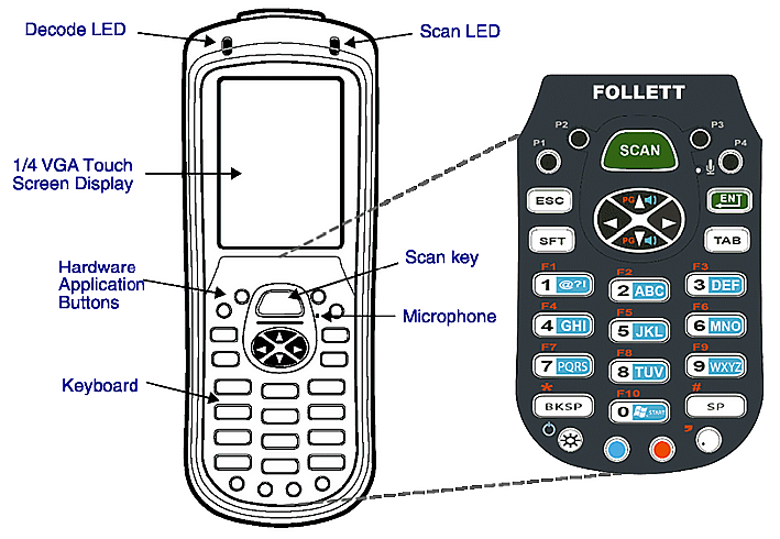 If you have Destiny® and a wireless network, the Panther's customized browser communicates directly with Destiny, letting you perform real-time transactions. When you are out of range of your wireless network or when your Destiny server is not available, you can use Follett Remote.