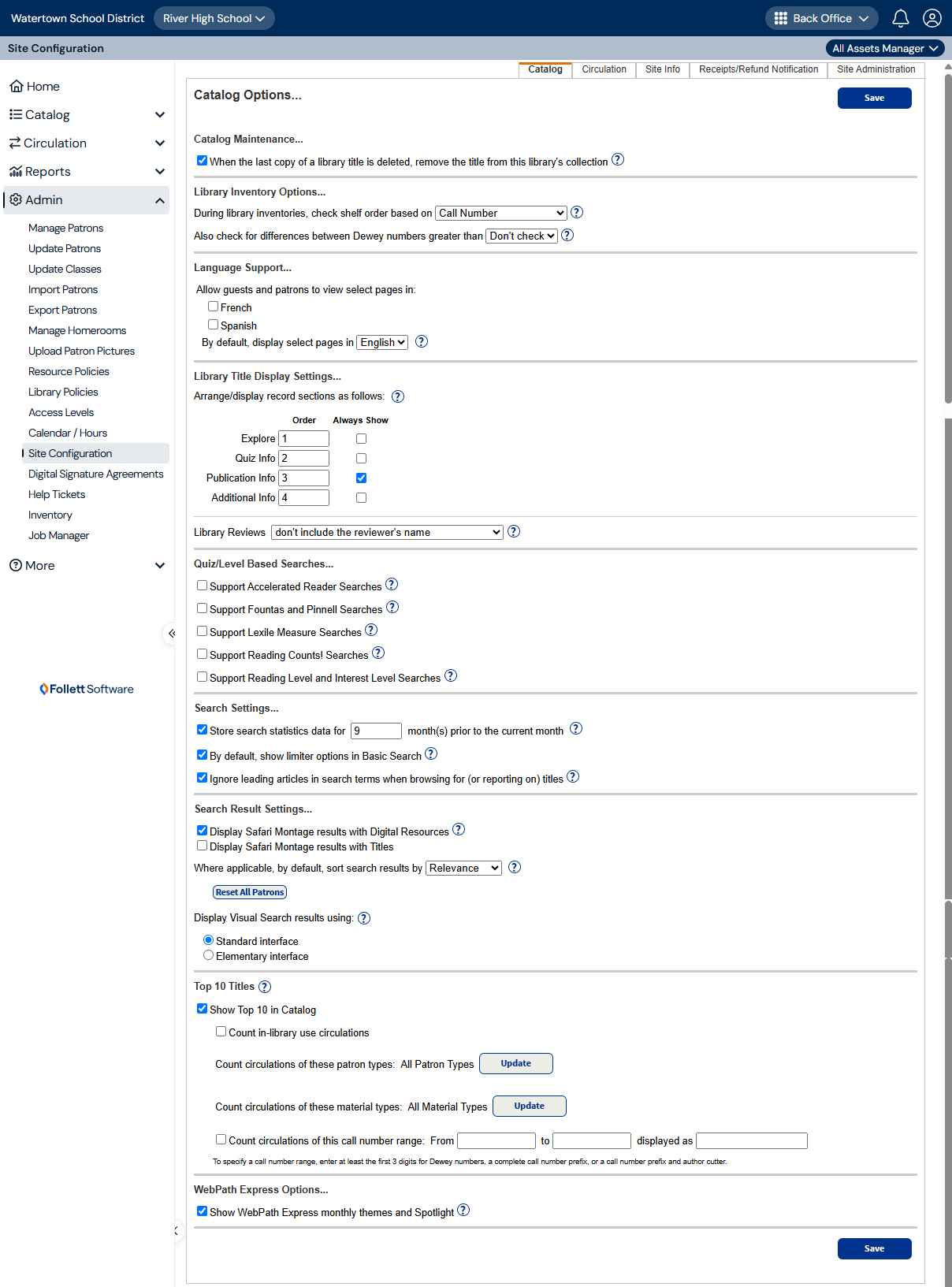 Select Site Settings Catalog OptionsThe following is a list of settings you can configure on Admin > Site Configuration > Catalog tab. |