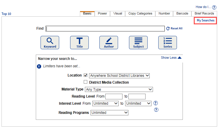 - Select Catalog > Library Search, and then select a tab based on the type of search you want to look up.