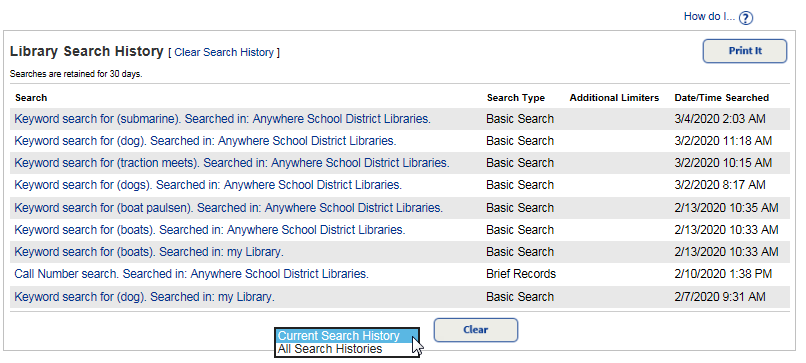 - If you are a Guest of the library or district media center, you may want to completely clear your history before leaving the search station.